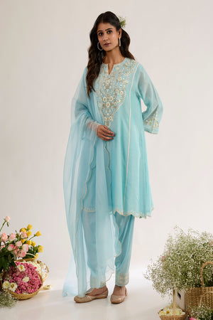 Long Choga With Salwar And Organza Dupatta