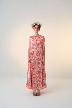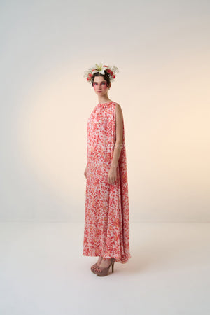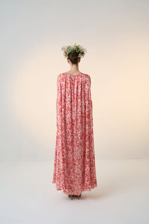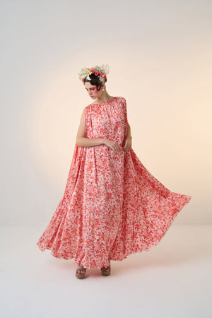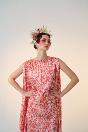 Coral Red, Gathered detail on the neck, Boat neckline, flary.