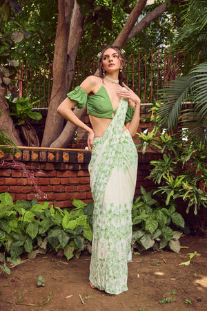 This ensemble has our classic pearl highlight on the print detailing complimenting linear artwork perfectly juxtaposed together exhibiting impeccable couture craftsmanship. This outfit is a perfect fit to dance away the cocktail night or hit the reception party!
