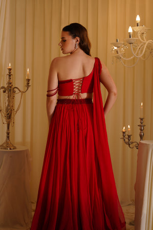 We bring to you an enamouring beautiful creation of classic silhouettes in a palette of rich red, hues strew with our exquisite