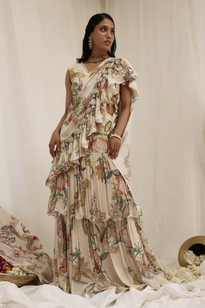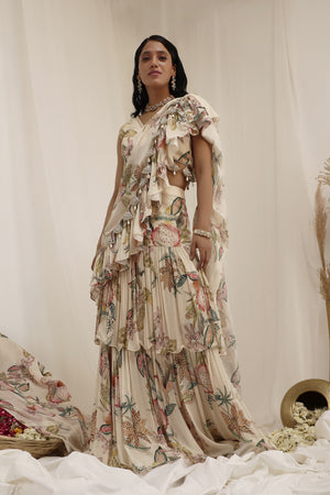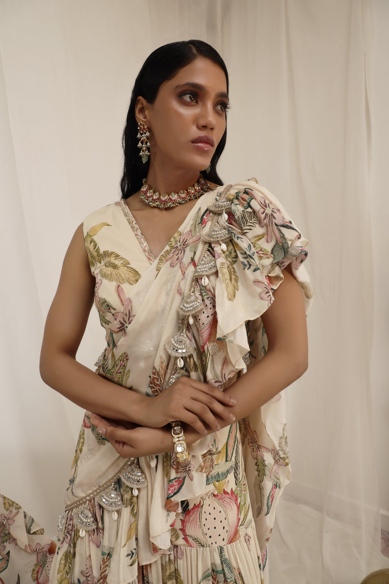 Madhaniya Draped Saree is a complete blend of grace and chic charm.