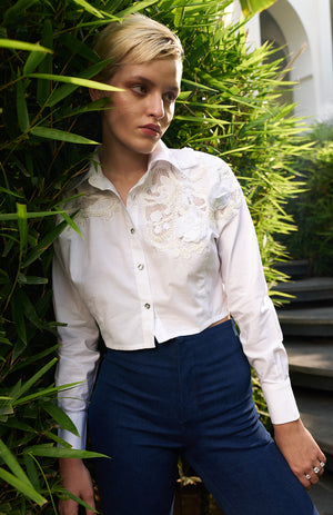 Discover the 'Madison' shirt, where every detail tells a story. This customisable embroidered crop top is your canvas to add a personal touch, creating a one-of-a- kind piece that reflects your unique style