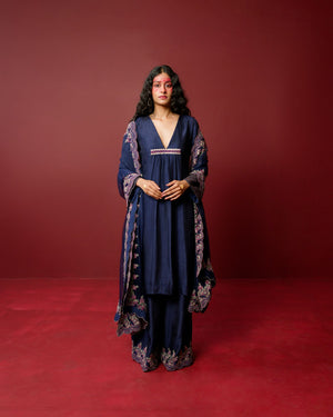 Malini Kurta Set means fragrant and heavenly. The fragrance and crafting of the style describe unmatched sophistication topped with unique color blocking and fine embroidery process.