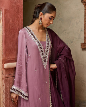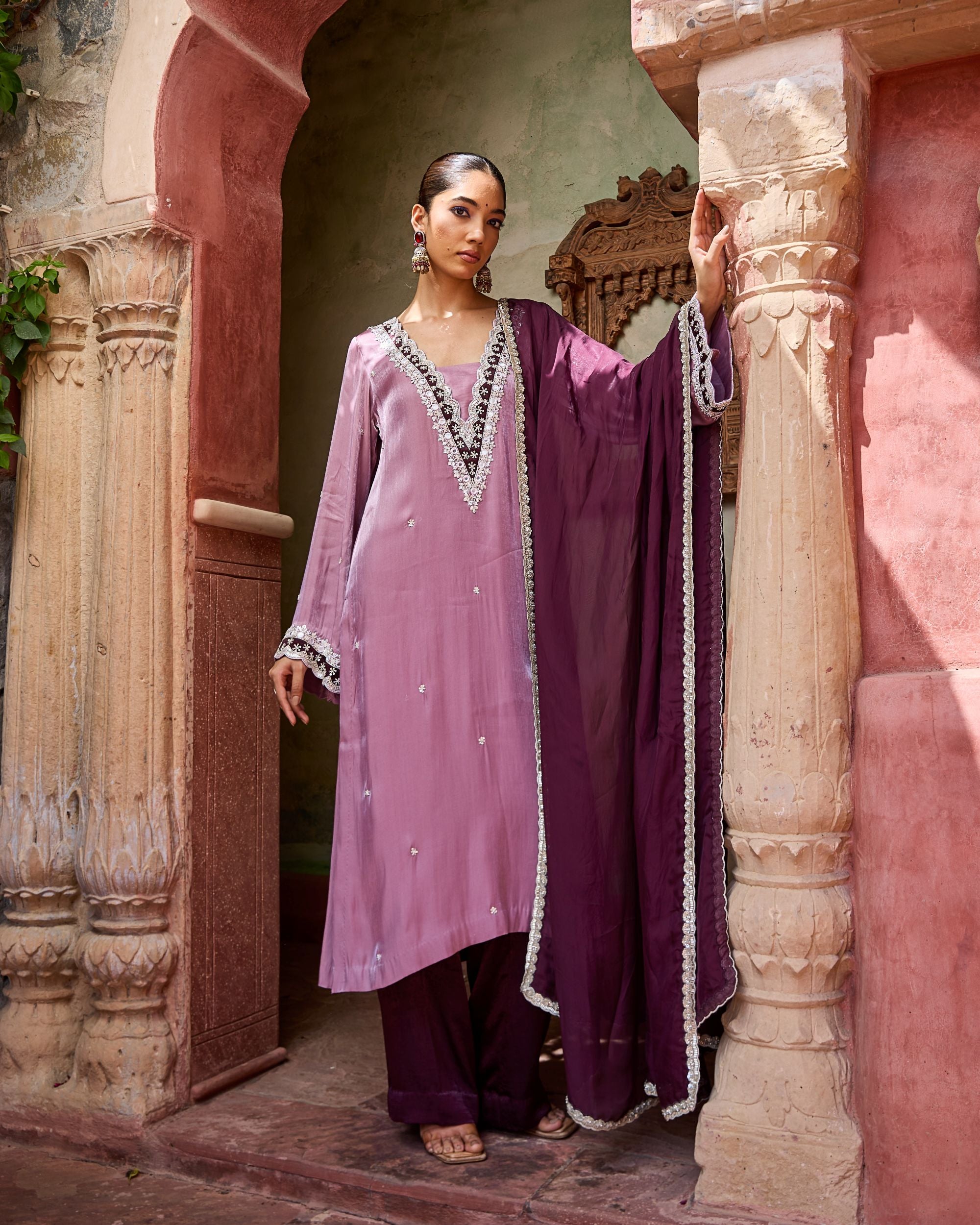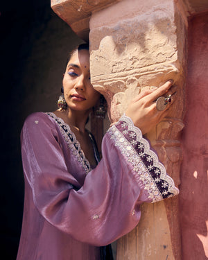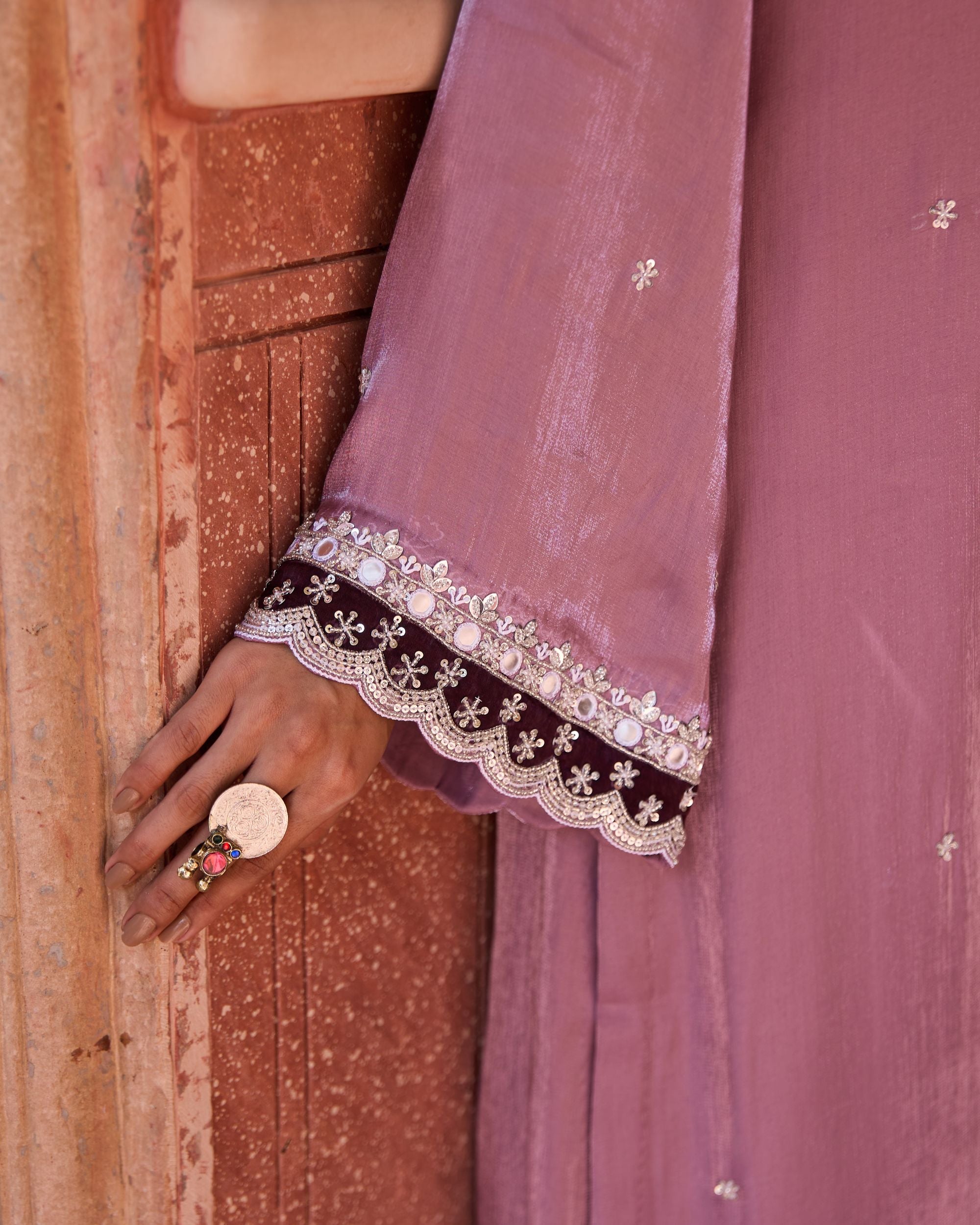 The Mannat Set is a traditional suit with a dupatta, adorned with delicate hand-done mirror work. Timeless and festive, it’s crafted to shine at celebrations and gatherings.