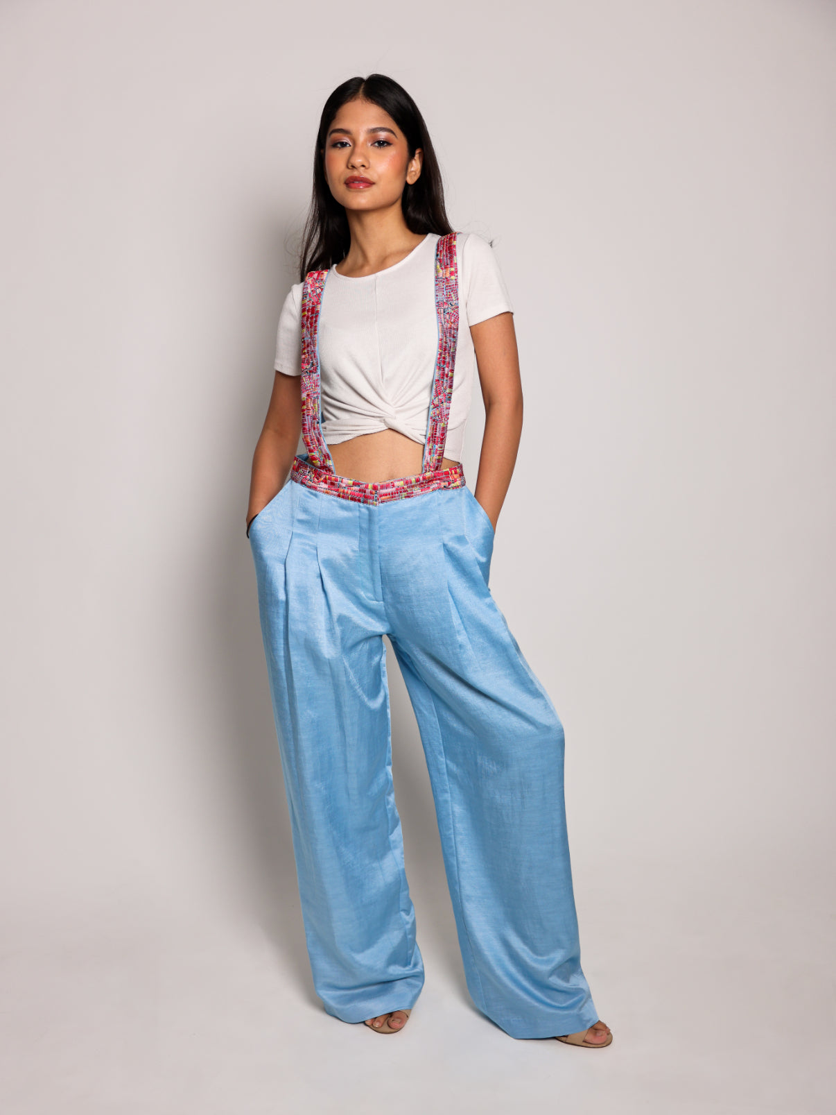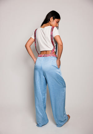 Soft Linen Satin And Georgette Hand Knife Pleated Panel Pant. A Corset Bodice On The High Waist Cinches In The Figure And Makes For An Flattering Piece. Is It A Skirt Or Trouser?
