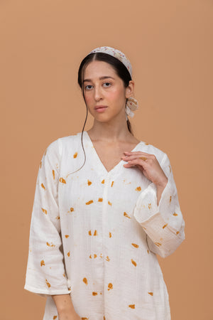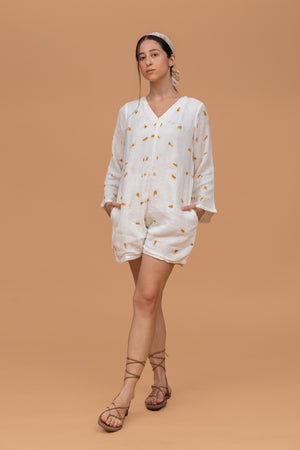 Marigold Ecoprinted Gots-Certified Wrinkle Cotton Short Jumpsuit