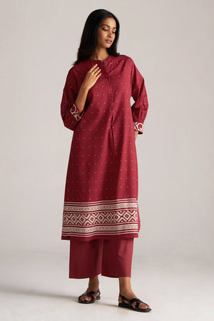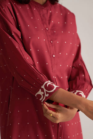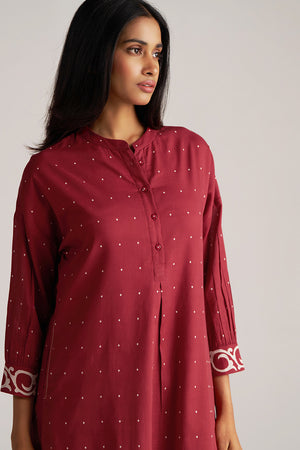 Maroon and Off White Mul-Mul Print Co-ord Set