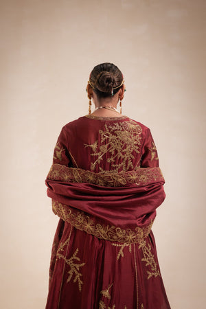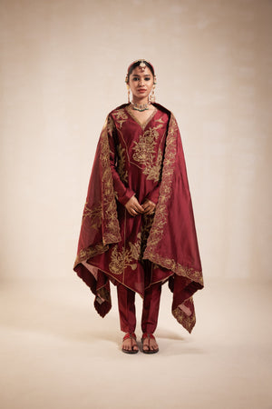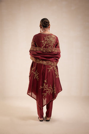Maroon Chanderi Structured Kurta Set