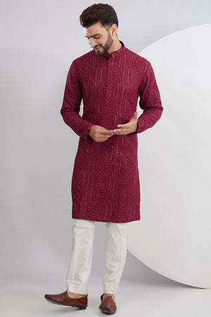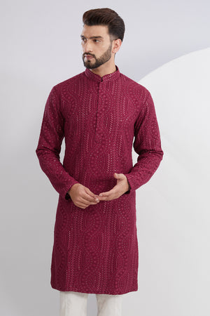 Maroon Embroidered Kurta with Intricate Sequins Work