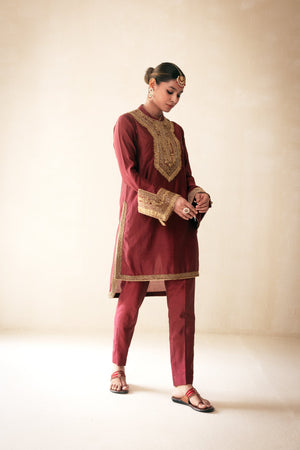 Maroon High Low Kurta Set