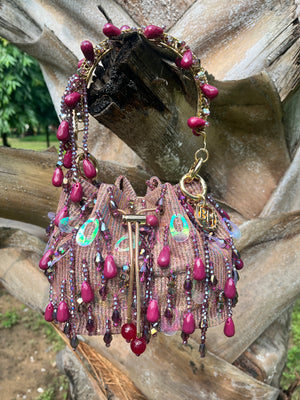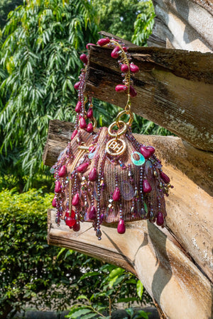 Inspired by traditional bags, Artisans in India and shaped to a lightweight structured form crystals Potli bags.