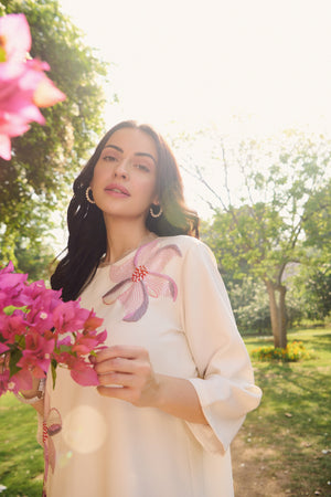 The Martina Dress Is One A Kind To Have In Your Wardrobe. This Dress Is Hand Embroidered Beautifully With Sequins And Bead Work . It Is Extremely Perfect For The Summer Events And A Loose Fit Dress So Anyone Can Wear It In Any Size