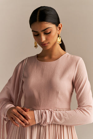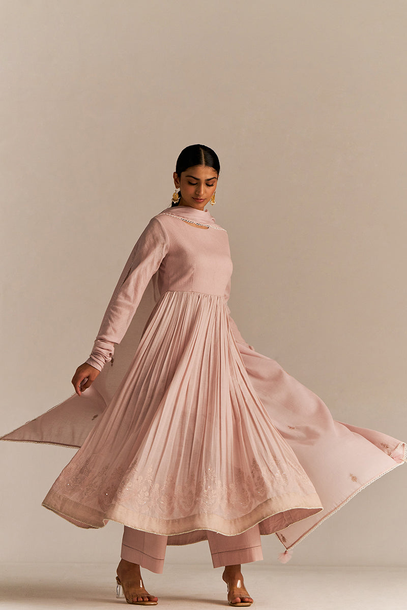 Mauve Chalk Mul-Mul Anarkali Kurta Set