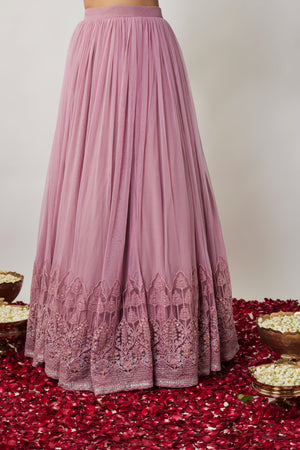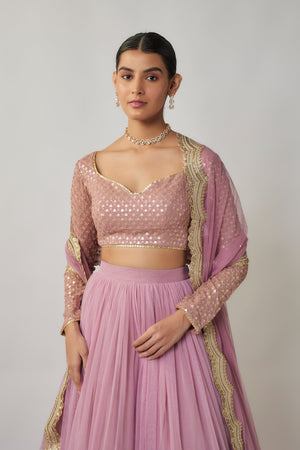 Mauve Sequin & Thread Embroidered Net Lehenga Set
