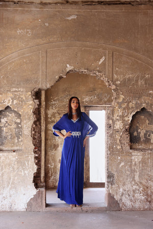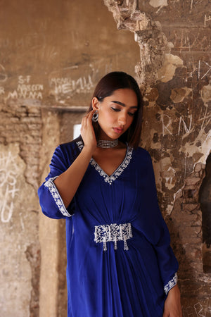 Full Length Draped Kaftan, Embellished On The Neckline, Sleeves And Waist