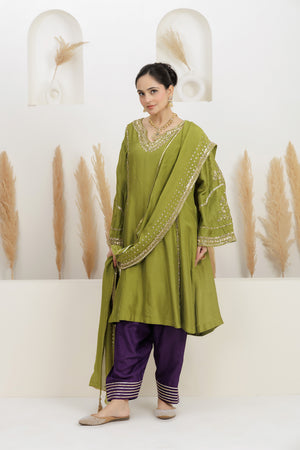Mehendi Green Suit With Salwar And Dupatta.