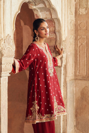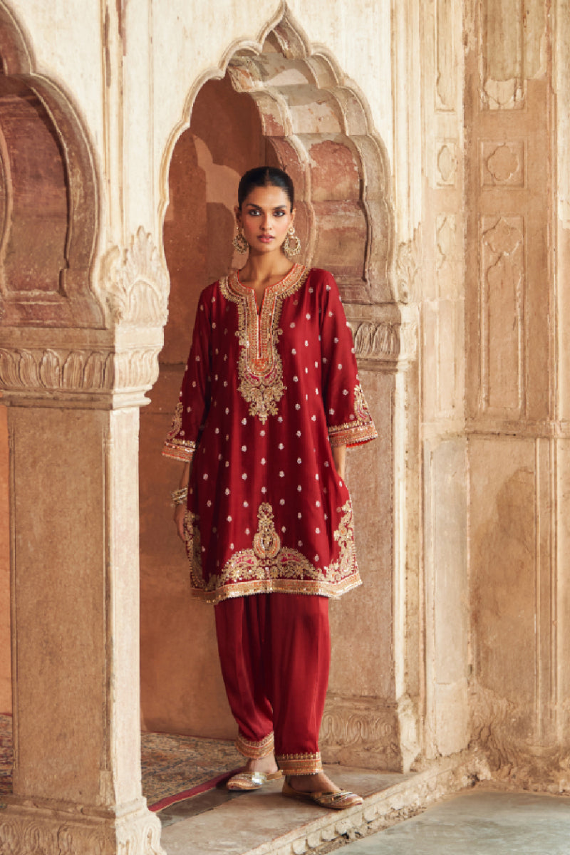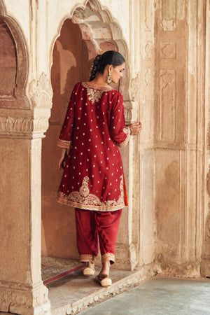 MEHWISH - DEEP RED SHORT KURTA WITH SALWAR AND DUPATTA