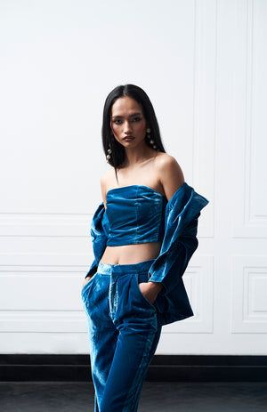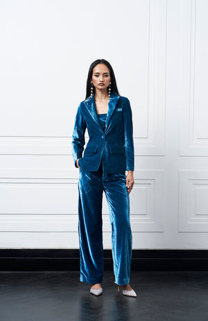 Introducing Mexik Blazer Set, this chic 3-piece set features a luxurious bralette, tailored pants, and a stunning jacket, perfect for making a bold fashion statement. Crafted with meticulous attention to detail, this ensemble exudes confidence and charm, making it a must-have addition to your wardrobe.