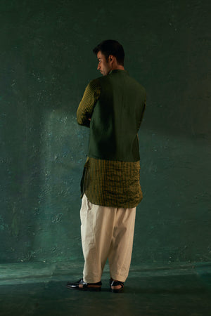 Midas Deep Green Tissue Stripe Nehru Jacket - Set of 1
