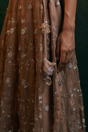 Midas Ginger Organza Hand Embroidered Lehenga - Set of 3