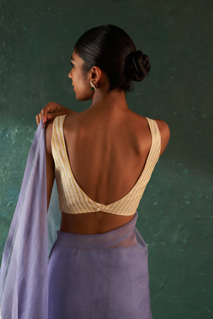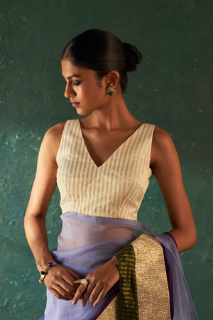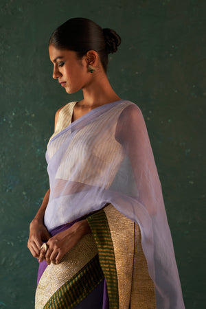 Midas Purple Saree with Ivory Tissue Stripe Blouse- set of 2