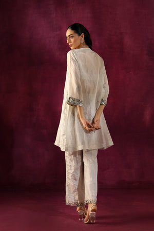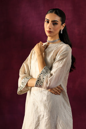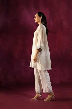Mirror Embellished Tissue Tunic With Mirror Embellished Cig Pants
