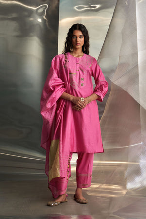 Fabric: Kurta: Chanderi; Lining: Cotton; Pant: Cotton; Dupatta: Chanderi