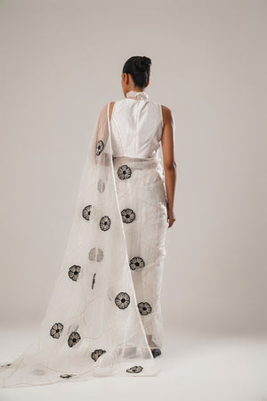 Elevate your ensemble with our White Silk Chanderi Blouse, a blend of timeless elegance and modern tailoring. Crafted from luxurious silk chanderi fabric, this blouse features intricate dori work along the seams, expertly designed to accentuate and flatter the fit. Perfect for pairing with sarees or skirts, this blouse adds a touch of sophistication to any outfit, making it an essential addition to your wardrobe.