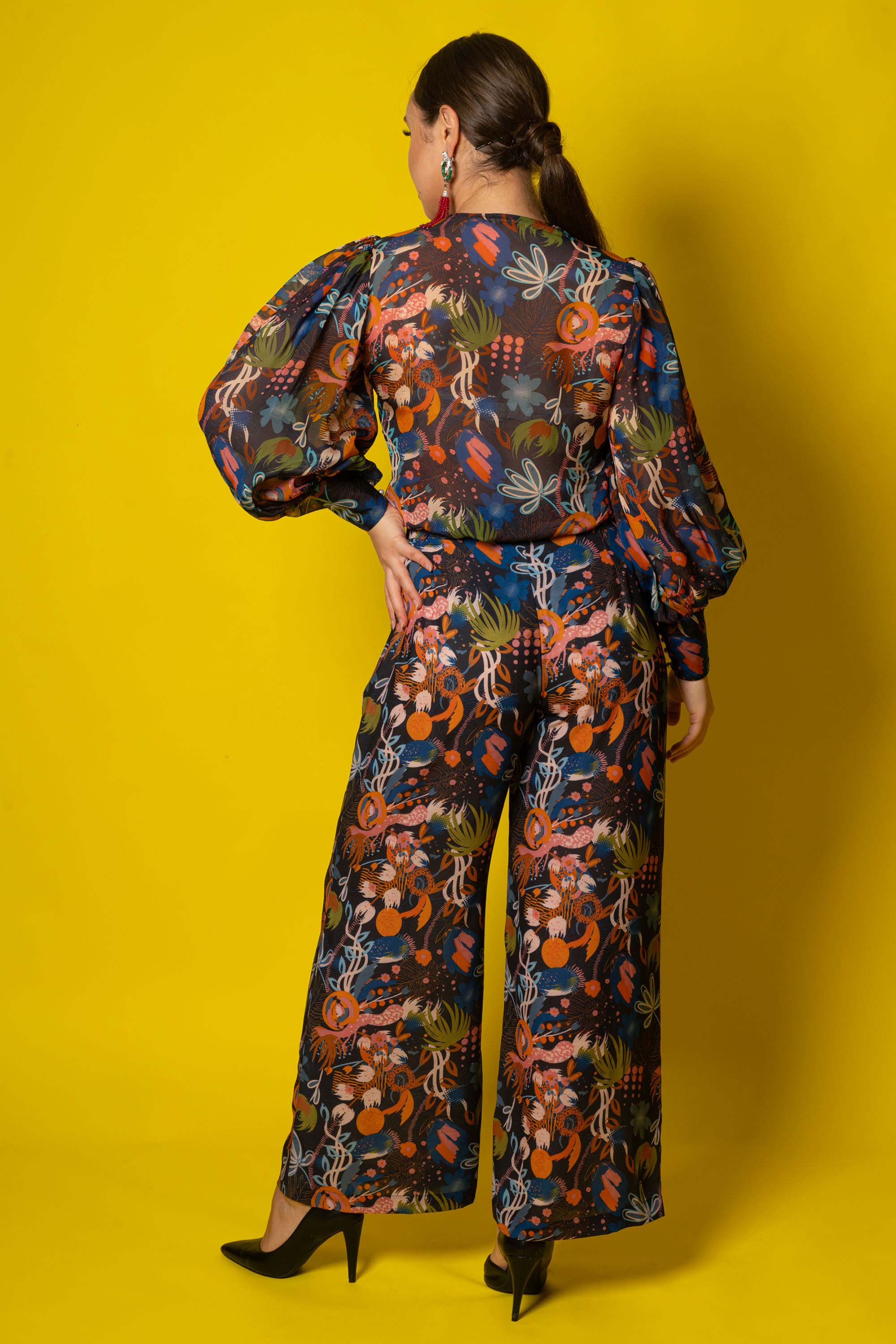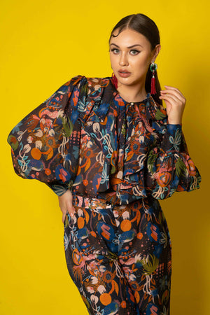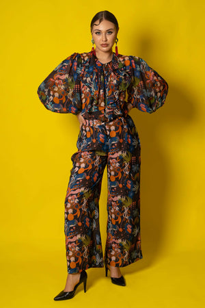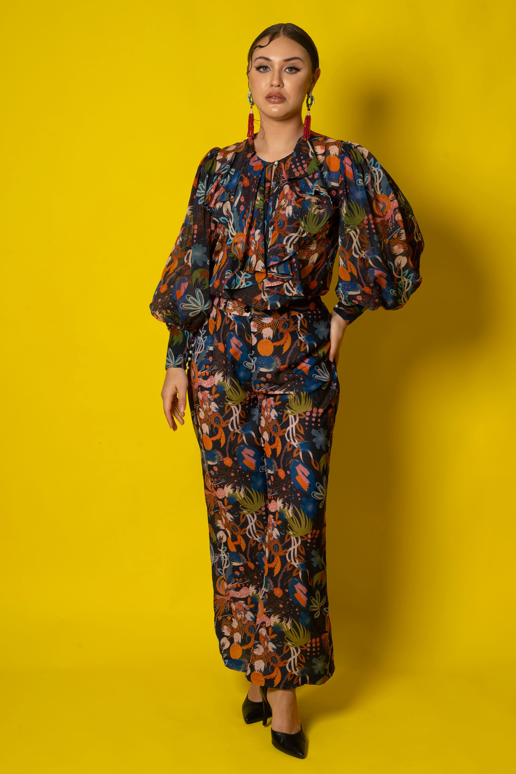 A printed 3-piece coord set is a fashionable outfit that includes a matching top, bottom, and sometimes a jacket or cardigan. The set is designed with a coordinated print or pattern, giving it a trendy and put-together look. It's perfect for creating a stylish and effortless outfit.