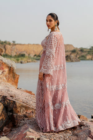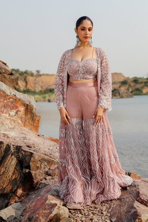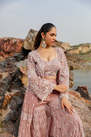 This Mauve Long Jacket And Grara Are Fully Embroidered With Crystles Which Are In Florals Intricate Hand Embroidery, Paired With A Mauve Colour Top