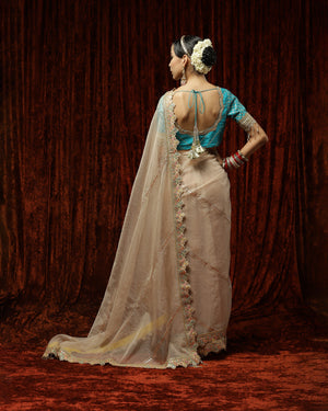 Mouse & Turquoise Saree & Blouse Set