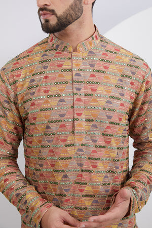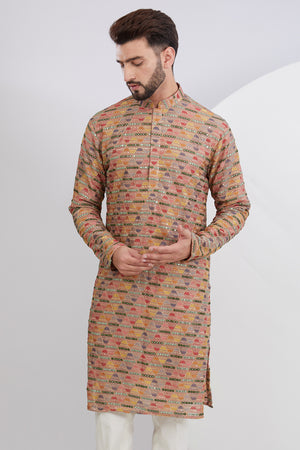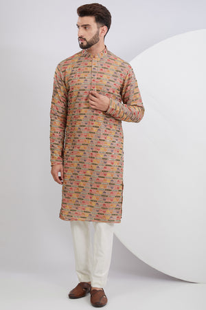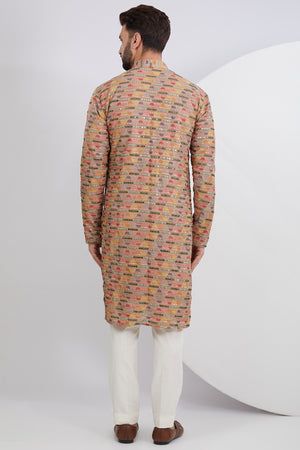 Mud Pink Multi Embroidered Kurta with Intricate Thread and Foil Work