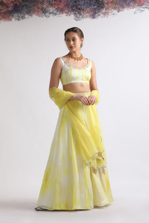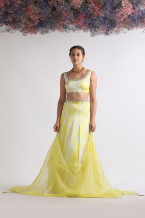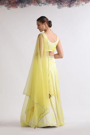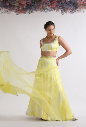The flared silhouette of our Mukhee Lehenga Set lends an ethereal charm and graceful movement to your attire, making you feel like a true princess.
