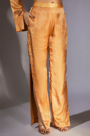 Featuring Mustard Embroidered Pant Set in Gajji Silk