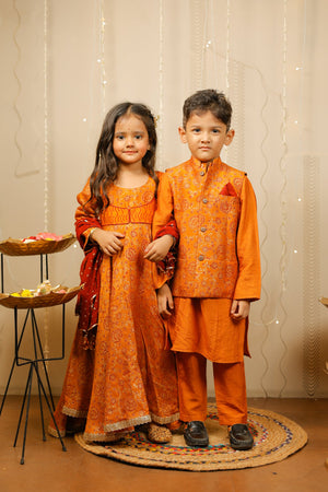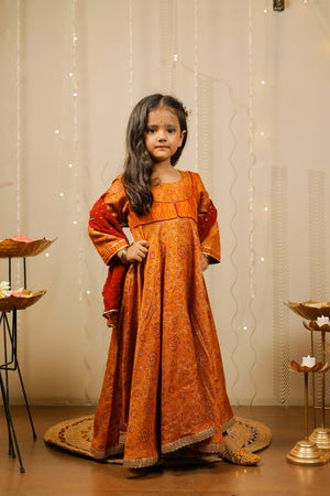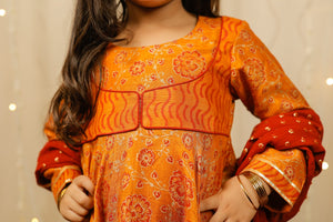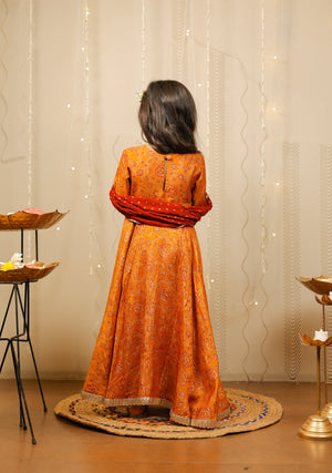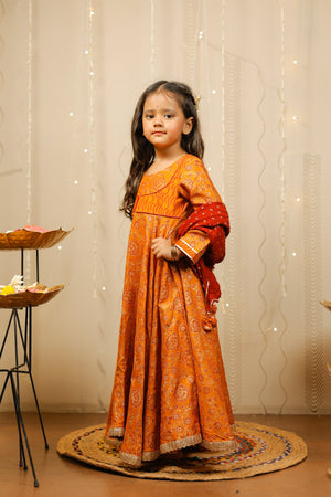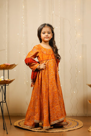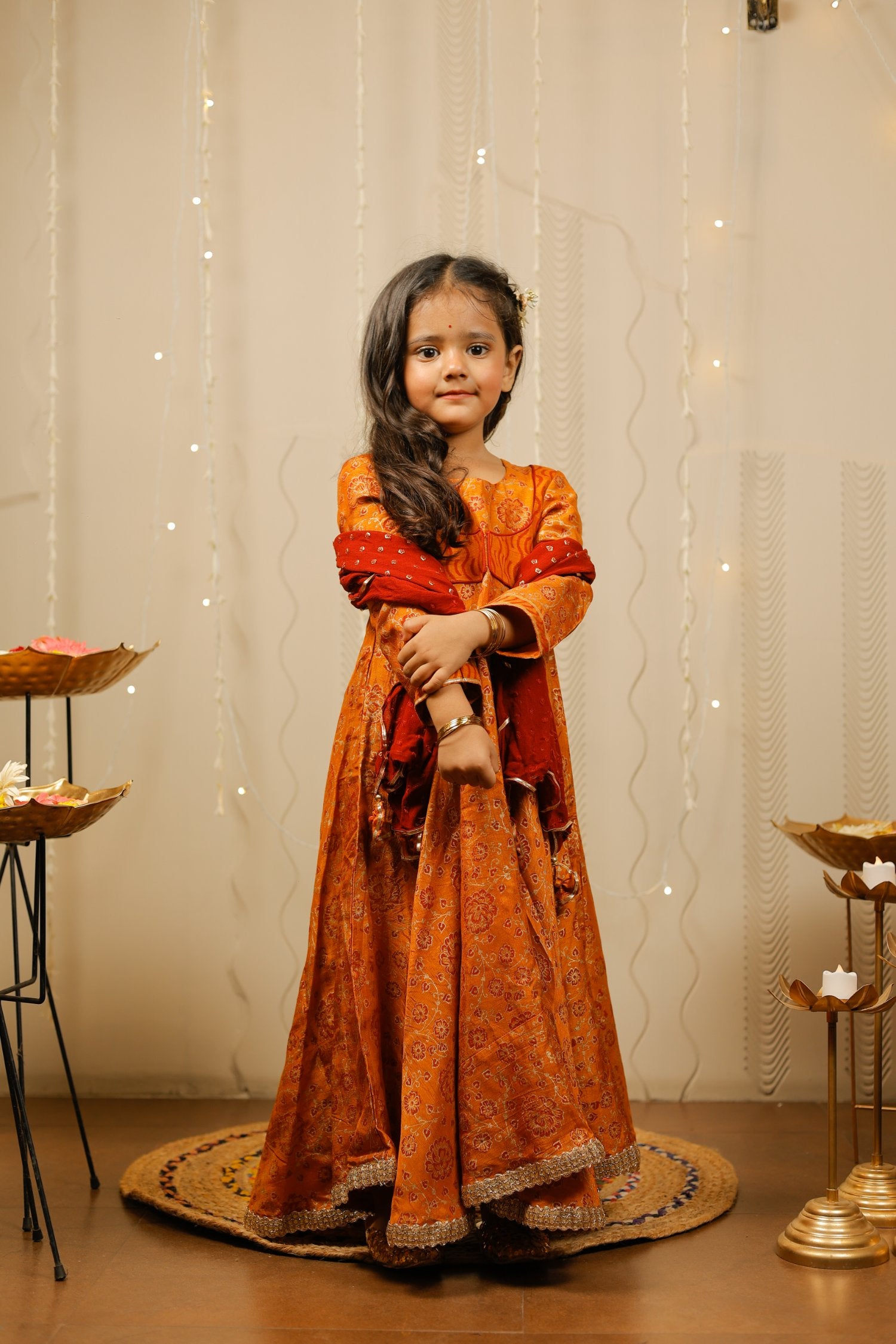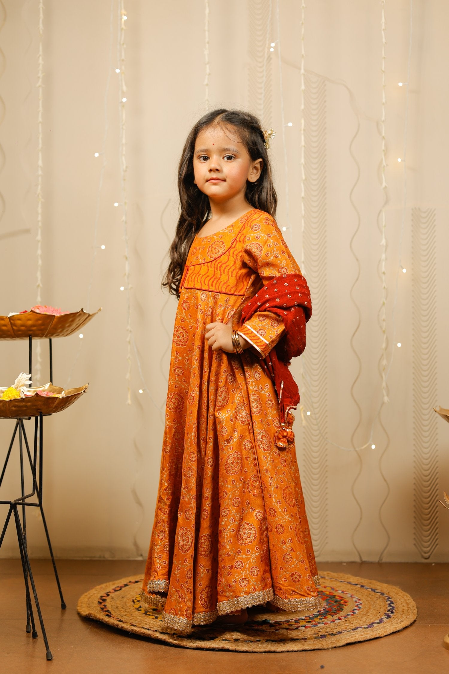 Block printed full length kurta with lace at the bottom and dupatta embellished with lace and tassels
