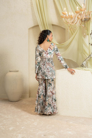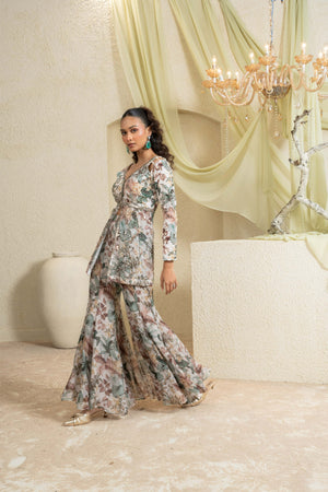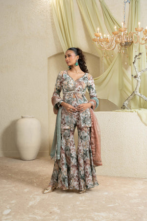 Muted Garden Hand-Embroidered Sharara Set
