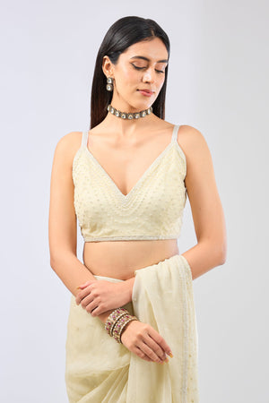 Sage Georgette Full Hand Embo. Mumtaz Thread Work & Sequin Saree Set