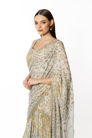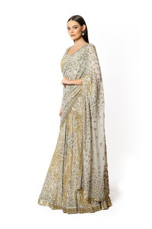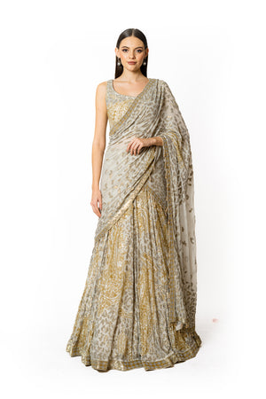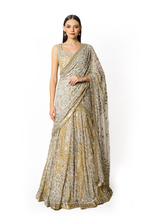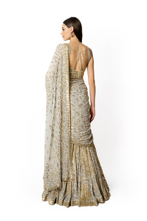 Ivory/ Fold Gorgette Fully Hand Embo. A.P Jaal Lehenga Set
