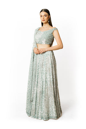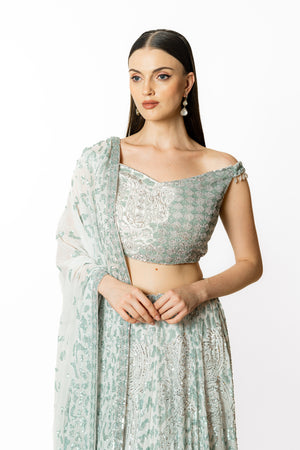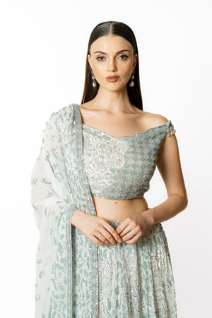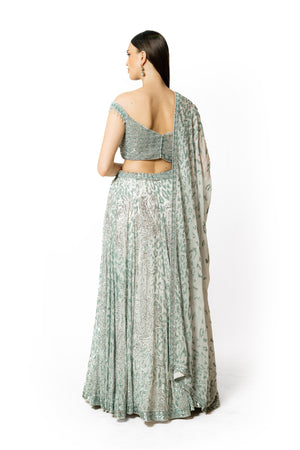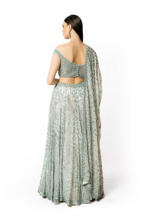 Ivory/ Silver Gorgette Fully Hand Embo. A.P Jaal Lehenga Set