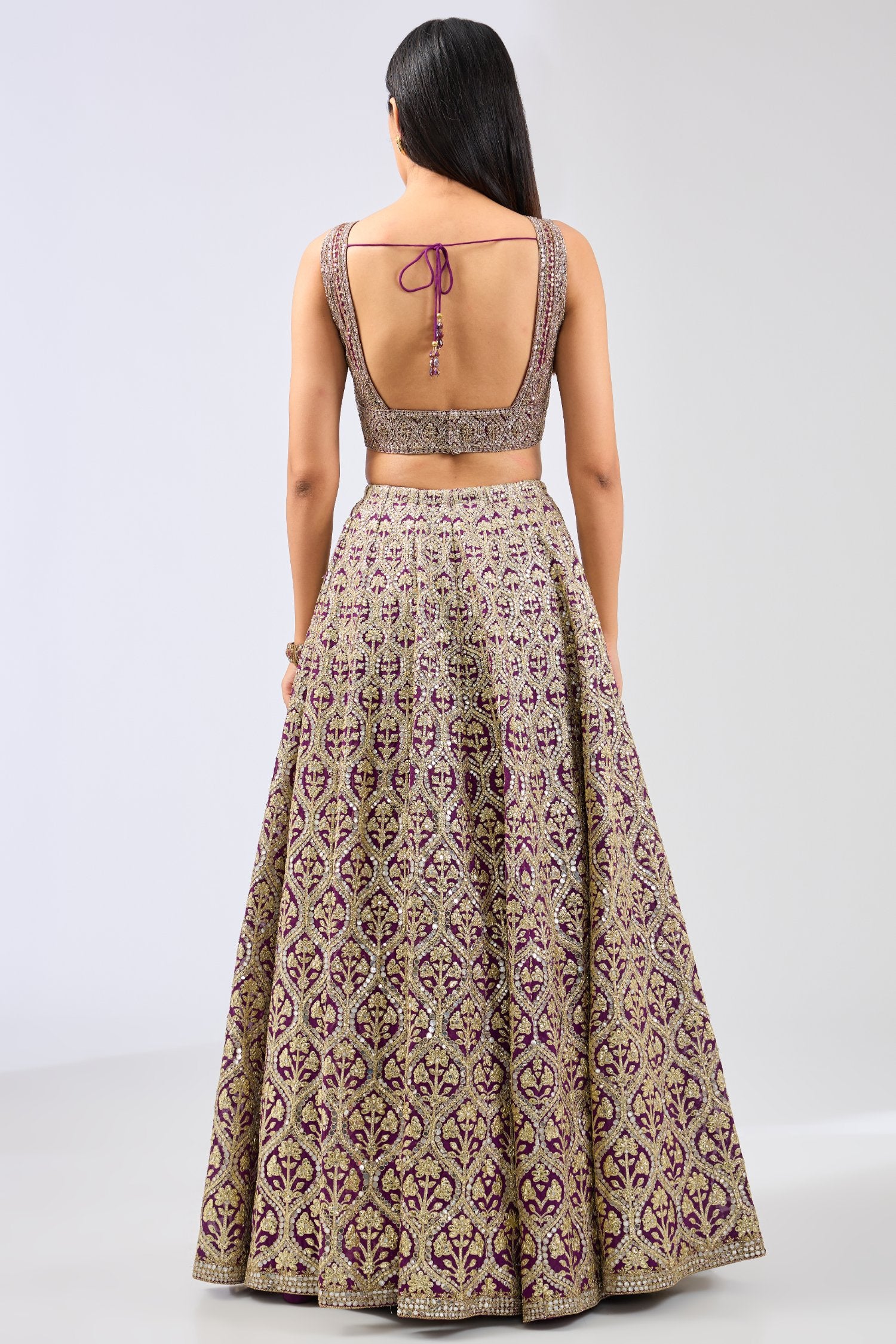 Purple Gorgetet Gotta Patti + Mirror Lehenga W Net Fully Hand Embo. Blouse & Dupatta Wbelt