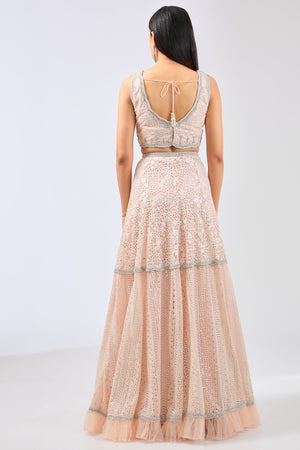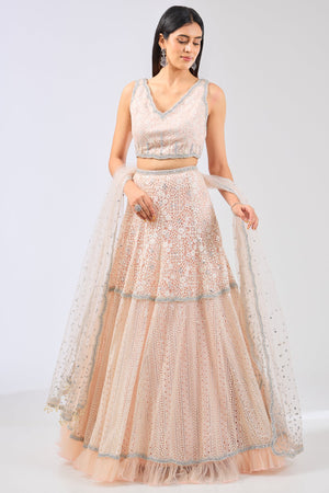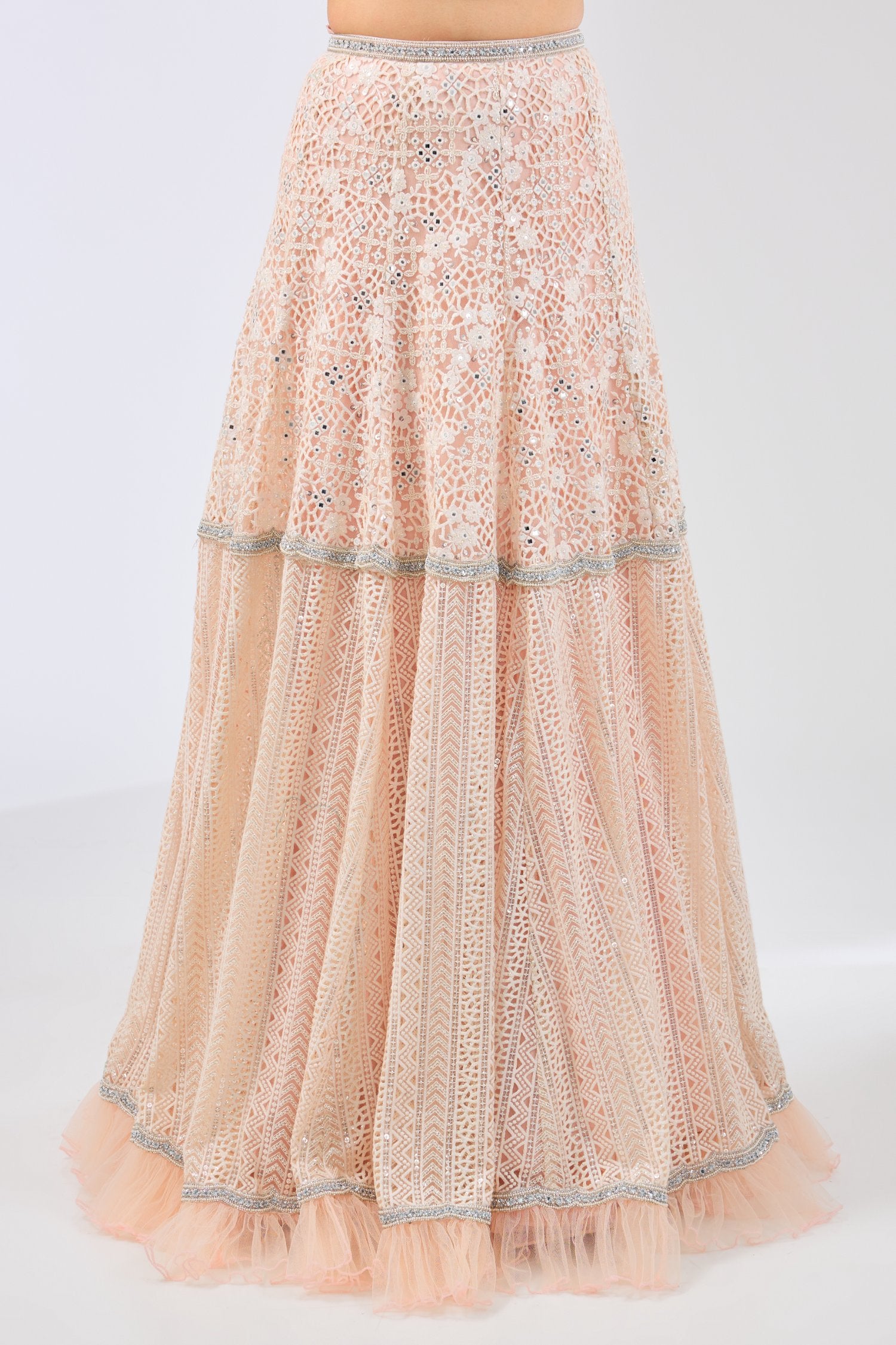 Pink Crosia Lace Lehenga W Hand Embo. Borders & Dupatta ,Blouse Set