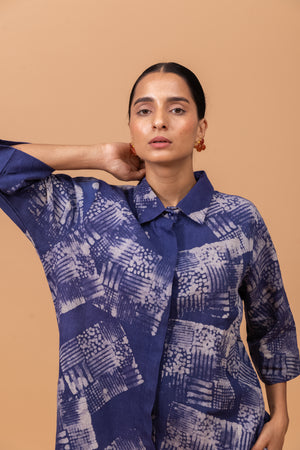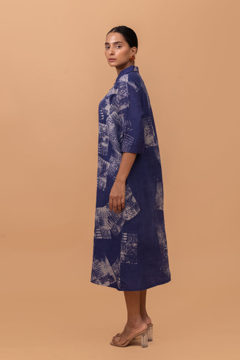 Naturally Dyed Indigo Batik Print Shirt Dress