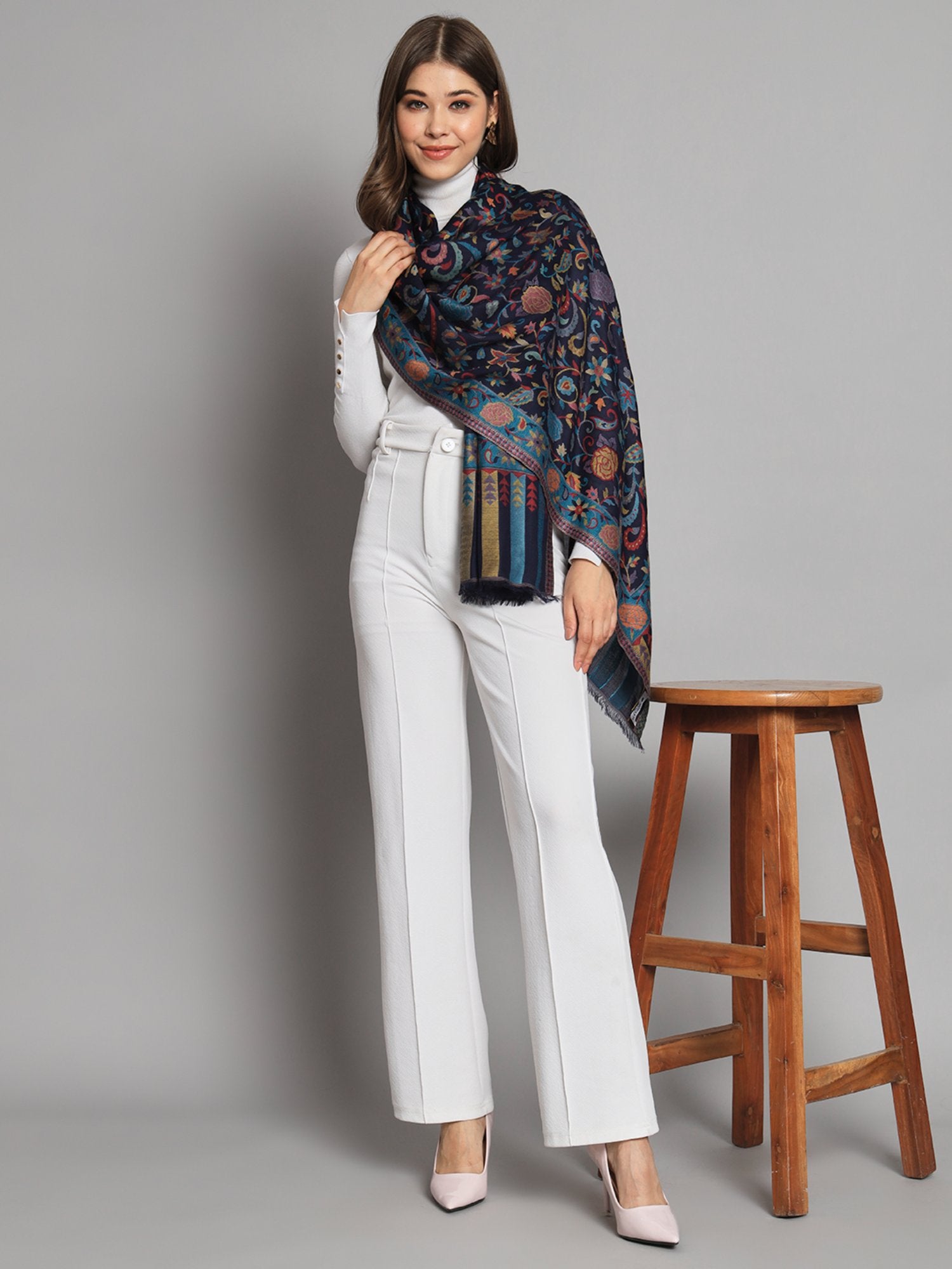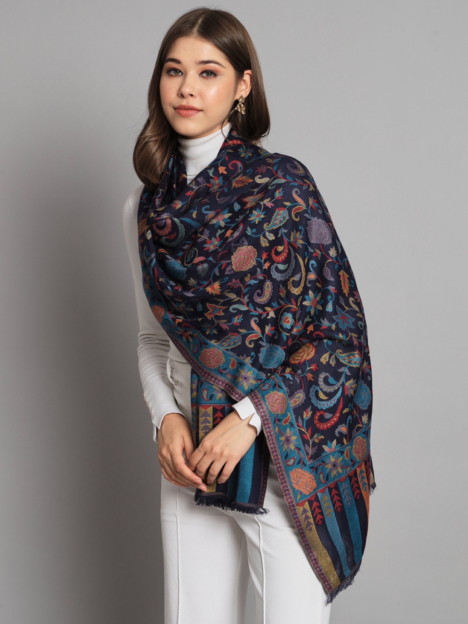 Indulge in the allure of our Navy Blue Floral Artwork Kani Shawl. Exquisite craftsmanship brings the delicate floral design to life, weaving a tapestry of elegance and charm. The rich navy blue hue adds depth and sophistication, making this shawl a versatile accessory for any occasion. Wrap yourself in the beauty of tradition and artistry, embodying grace and style with every drape of this enchanting Kani shawl.