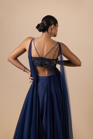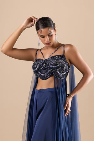 Navy Blue Fusion Crop Top With Plazzo