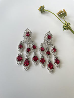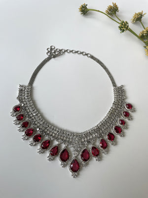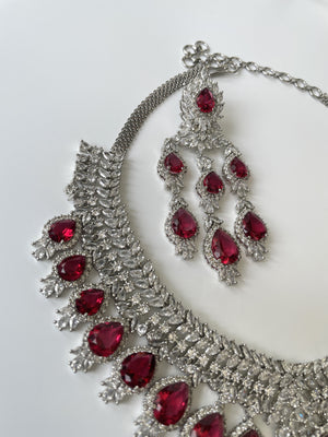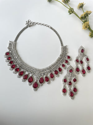 White Finish Zircon Necklace Set with Red Stones. Length: Necklace L : 2.3