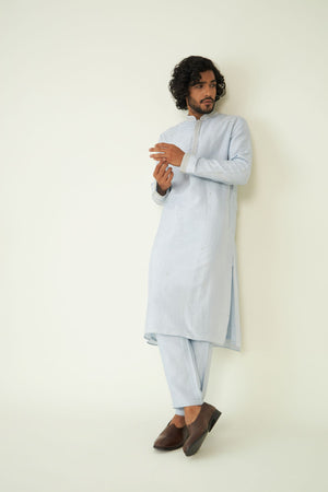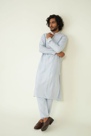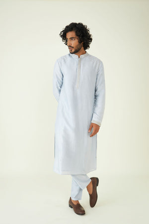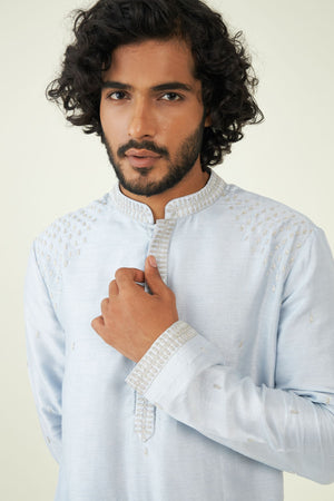 Ice Blue Embroidered Kurta with Ice Blue Pants