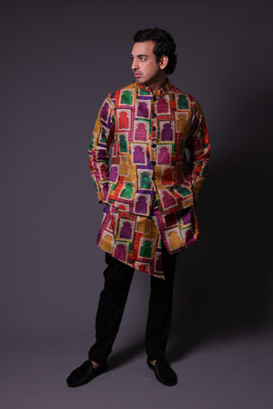 • Features a classic mandarin collar and tailored fit of the Nehru jacket, adding sophistication to the traditional outfit.