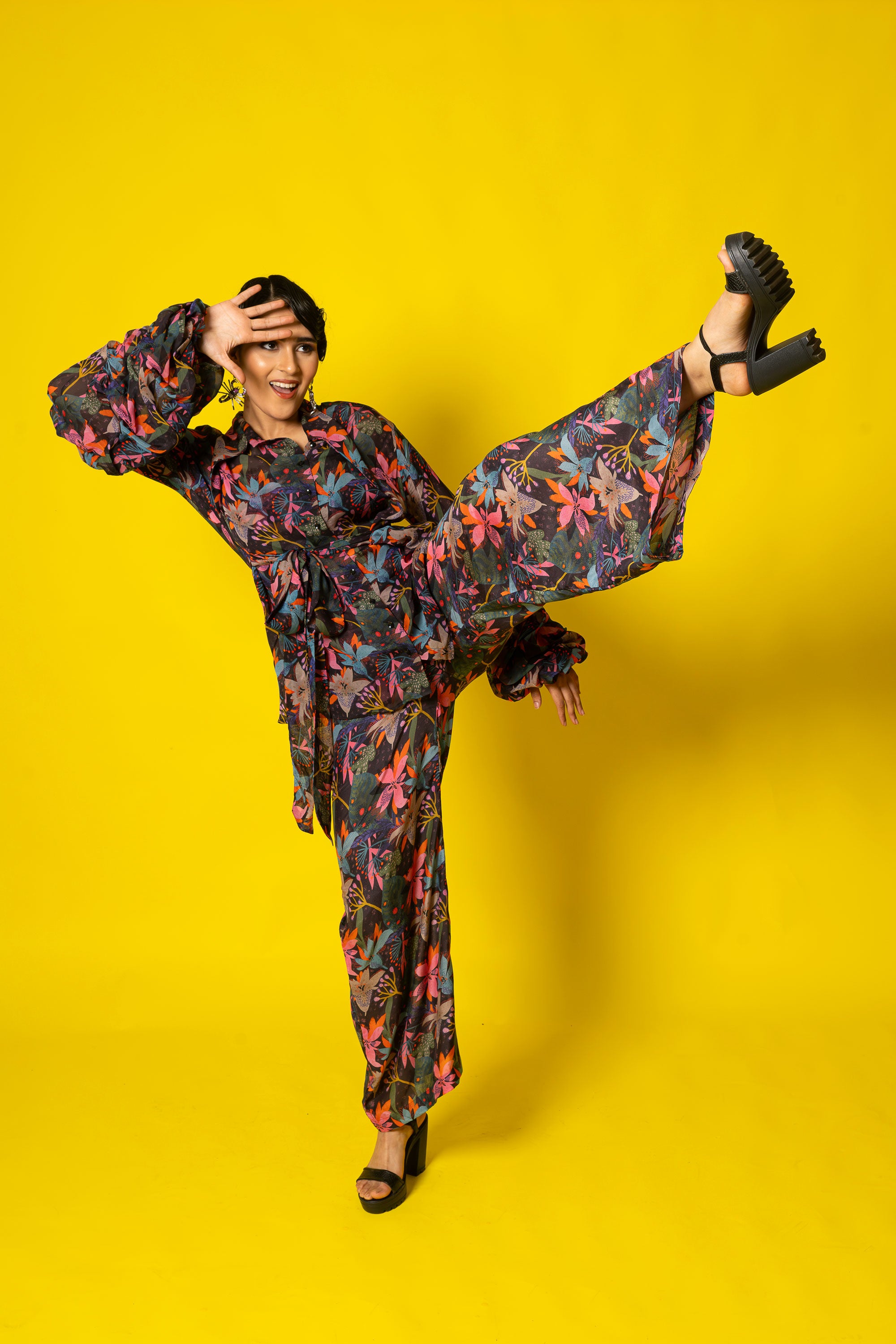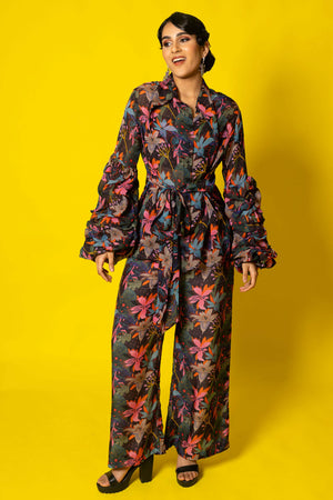 Introducing our fabulous floral print 3pc coord set!This trendy ensemble features a beautiful matching top, pant and shirt , all adorned with vibrant and eye-catching floral patterns.Perfect for those who love to embrace their feminine side while staying fashion-forward. The set is made from high-quality materials, ensuring comfort and durability. Whether you're heading to a garden party or a brunch date, this coord set will make you feel effortlessly stylish and ready to turn heads. So, why wait? Grab this must-have set and bloom with confidence