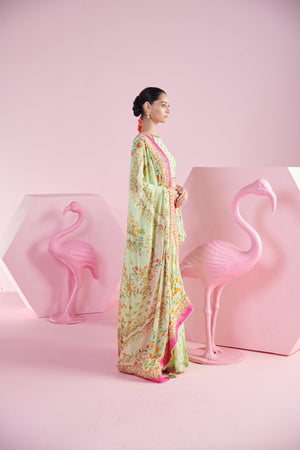 Embrace timeless sophistication with the Pistachio Elegance ensemble. This refined set features a pista green peplum top that offers a flattering, structured silhouette with a touch of playful flare and embroidery detail. Paired with flowy flare pants, the outfit combines comfort with chic style. Completing the look is a luxurious Iznik printed dupatta, known for its intricate patterns and vibrant colors that add a statement touch to the ensemble. Perfect for elegant occasions or festive events, this set effortlessly blends contemporary design with traditional charm.
