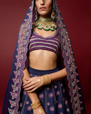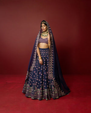 Niranjana Lehenga Set defines the night of the full moon. The Niranjana lehenga set is as magical as a full moon night, from the color palette to thoughtful embroidery, it is the magic for the soul and light for the senses.